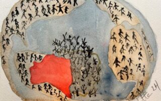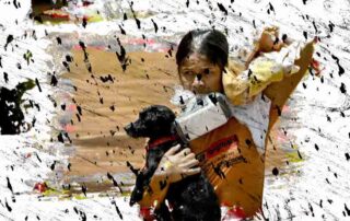 Estamos em um abrigo para atingidos pela maior catástrofe vivida no nosso estado. Vejo em um canto do salão
