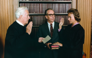 Sandra Day O'Connor presta juramento como a primeira mulher juíza na Suprema Corte dos EUA, em 25/09/1981 (Wikimedia Commons)