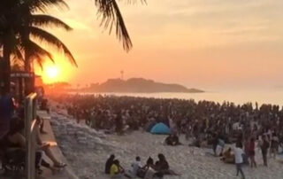 Centenas de pessoas aglomeradas em luau no Arpoardor em plena pandemia. Durante esse período de pandemia da Covid-19,