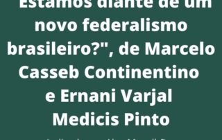 “Estamos diante de um novo federalismo brasileiro?” de Marcelo Casseb Continentino e Ernani Varjal Medicis Pinto. Indicado por Alex Magalhães em 19/04/2020.