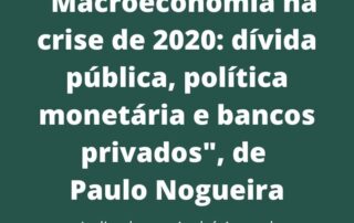 “Macroeconomia na crise de 2020: dívida pública, política monetária e bancos privados” de Paulo Nogueira. Indicado por André Amaral em 21/04/2020.